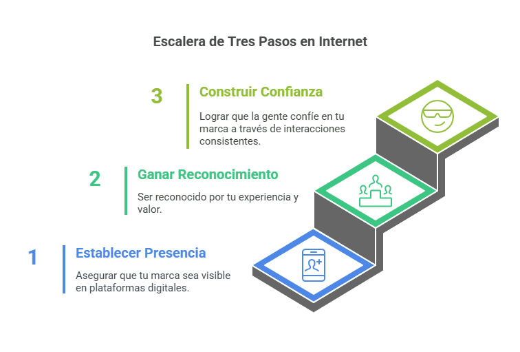 Una vez que te conocen y que te reconocen como bueno en algo, viene la parte clave antes de que te compren un producto o te contraten un servicio: el momento en que comienzan a confiar en ti. Ese es el preciado tercer escalón de la «Escalera de 3 Pasos en Internet«.